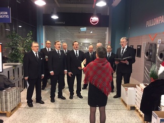 ![]() SML avasi joulukalenteriluukun 6.12.2017 K-Supermarket Puhjantähden aulassa. | ![]() SML-kuoro kesäkuussa 2017 Sattasessa Raunion kodin pihalla. |