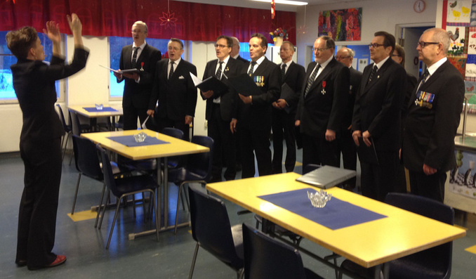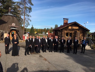 ![]() Kuoro valmistautuu vuoden 2014 itsenäisyyspäivän juhlaan kuoronjohtaja Merja Ylitepsan johdolla. |